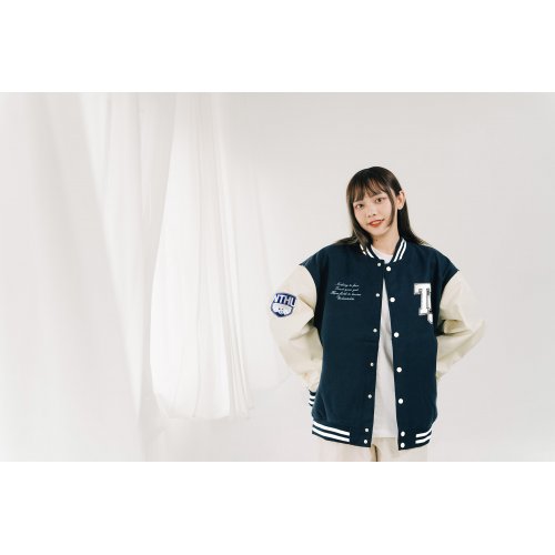 【最後50件,售完不補】NTHU率性滑面棒球外套_藍白撞色